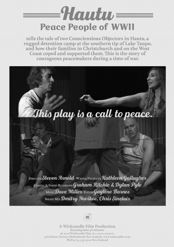 This drama tells the tale of two men in Hautu, Pete Bawn a Methodist Christian Pacifist and Tim Flanagan a West Coast Irish Catholic. It tells of their womenfolk – wives, mothers, sisters and children surviving at home in Christchurch and on the West Coast between 1939 – 46, and explores the lives of these pacifists, our peace people of WWII.